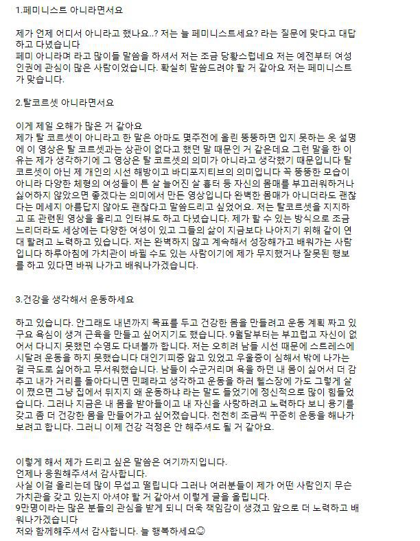 위 영상 이후로 가뜩이나 악플을 잔뜩 달던 남자들이 더더욱 난리치며 댓글 달고다님