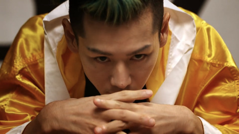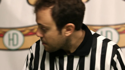 시합 전 눈싸움으로 기선제압하는 고바야시와 햄스터