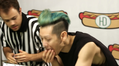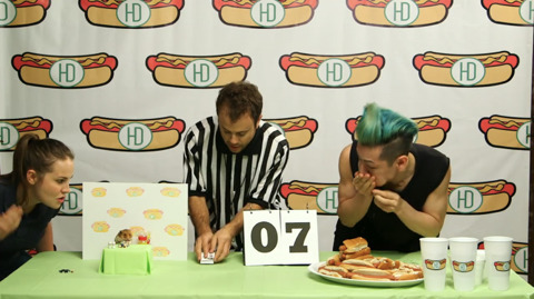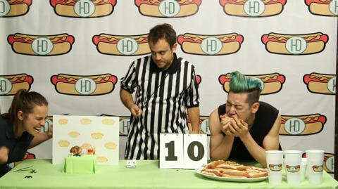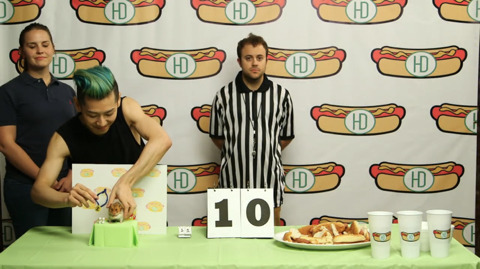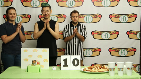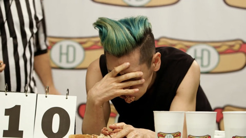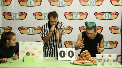 이번 대회 종목은 핫도그 빨리 먹기!