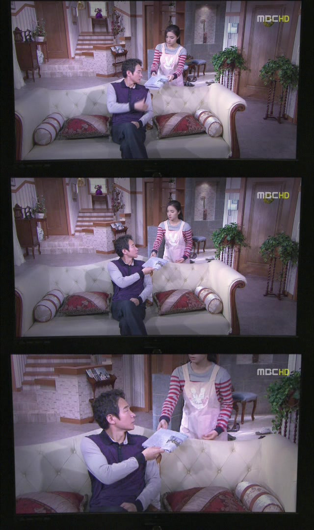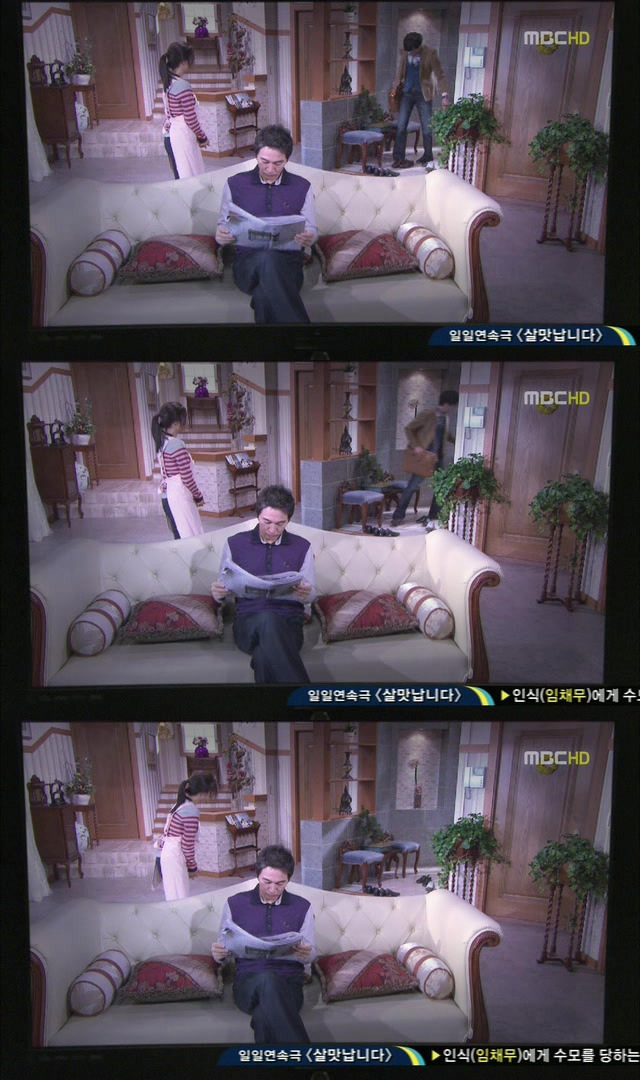 "신문을 두손으로 주는척하다가 주는 순간 한손으로 주고있지? 이것뿐인줄알아?"