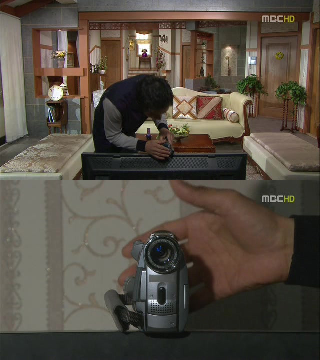 티비에 캠코터 설치하는 보석