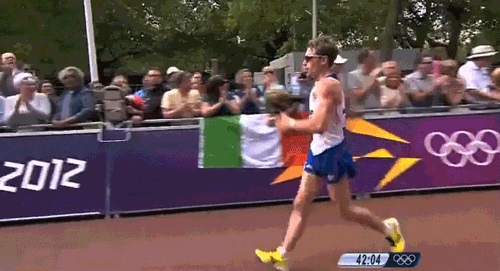 양 발이 한번에 땅에서 떨어져, 뛰는 동작이 되는 순간 경고가 주어지고, 3회 적발 시 실격처리가 된다.