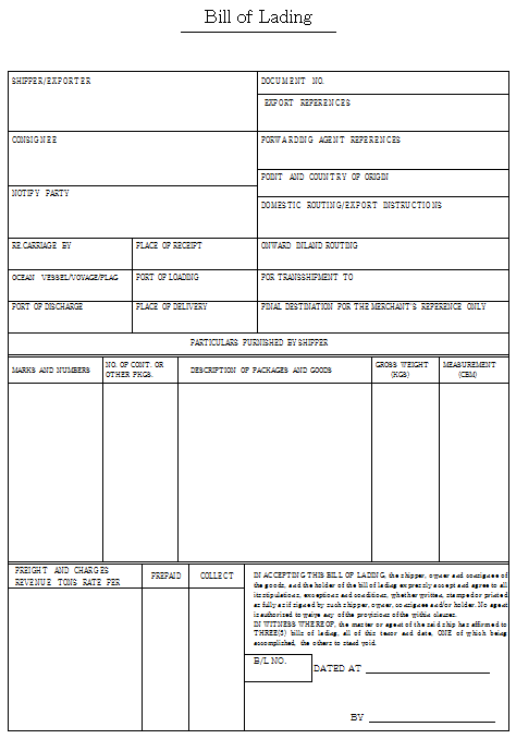 bill of lading(bl), 船荷證券, せんかしょうけん