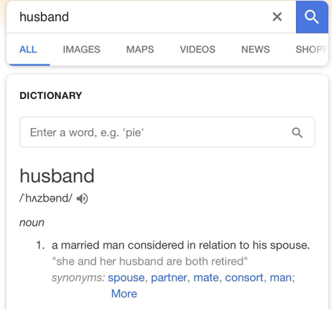 심지어 남편이라는 말이 동사로 쓰였을때는 아주 formal 하고 공식적으로 속어가 아닌의미로 쓰였다고 적혀있음