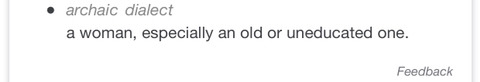 세번째 의미 : 여성. 특히 늙고 미개한 것