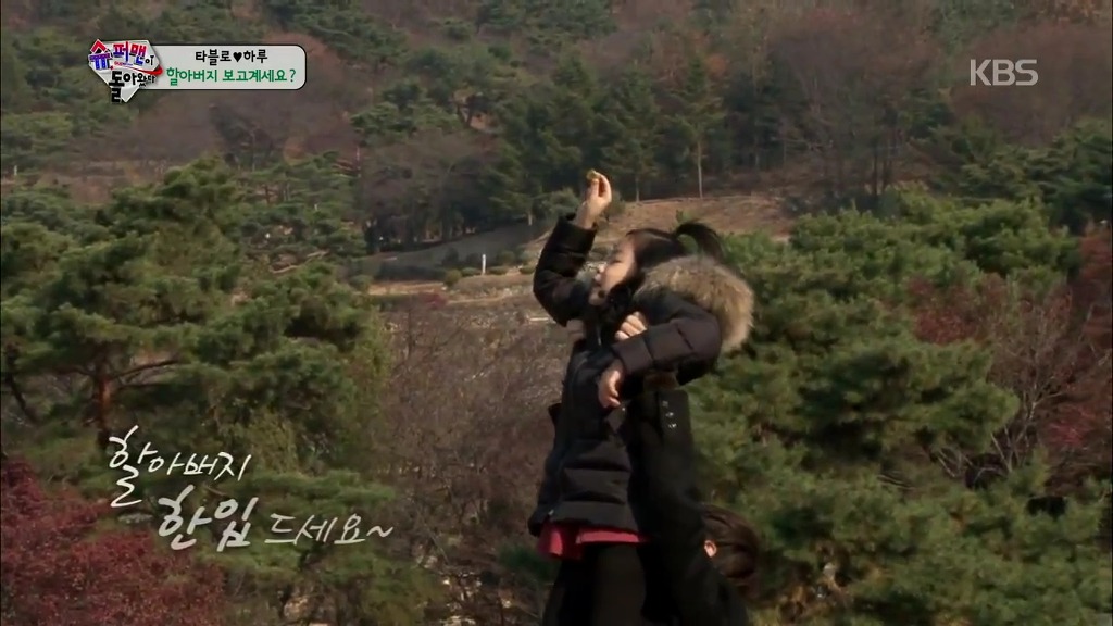 멀리 계셔서 안 닿으니까 일어서서 드리려는 하루