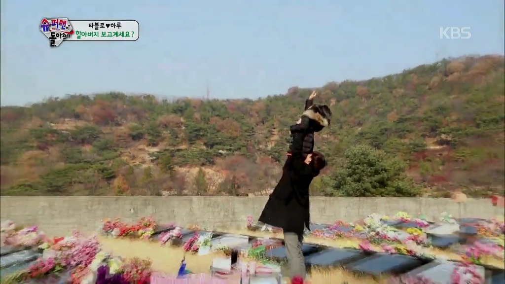 아빠 짐도 같이 들어주고 돗자리도 다 깔고 할아버지 묘비로 다가가는 하루