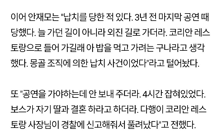 몽골 조직 보스 딸이 안재모를 좋아해서 결혼하고 싶다고 했다함