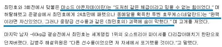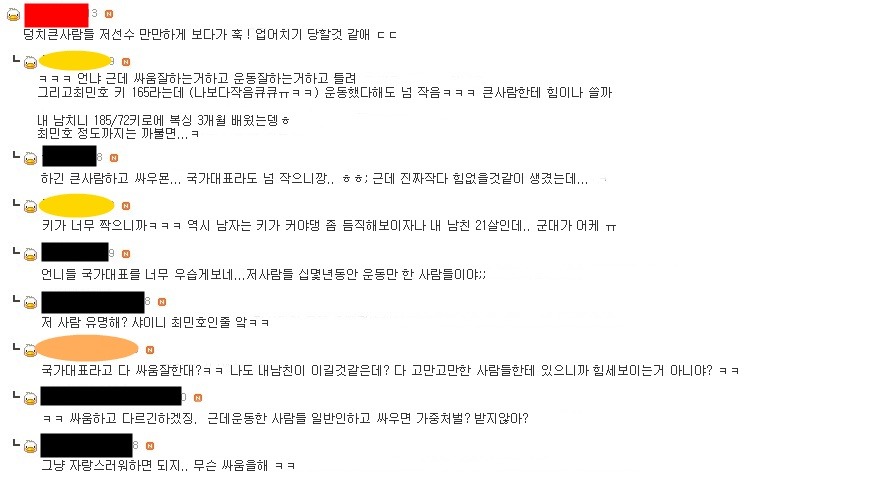 유도국가대표 최민호 활약상 글에 달렸던 뉴 쭉빵카페 댓글