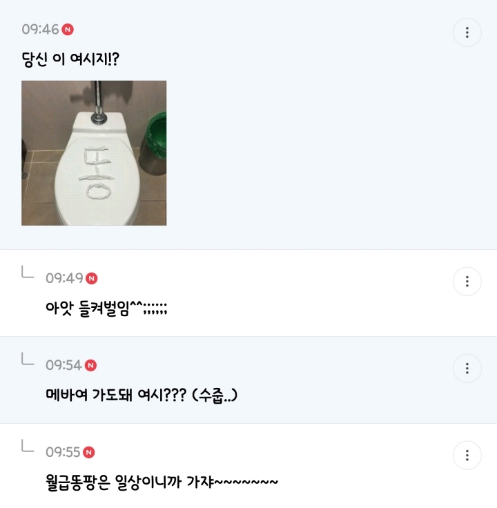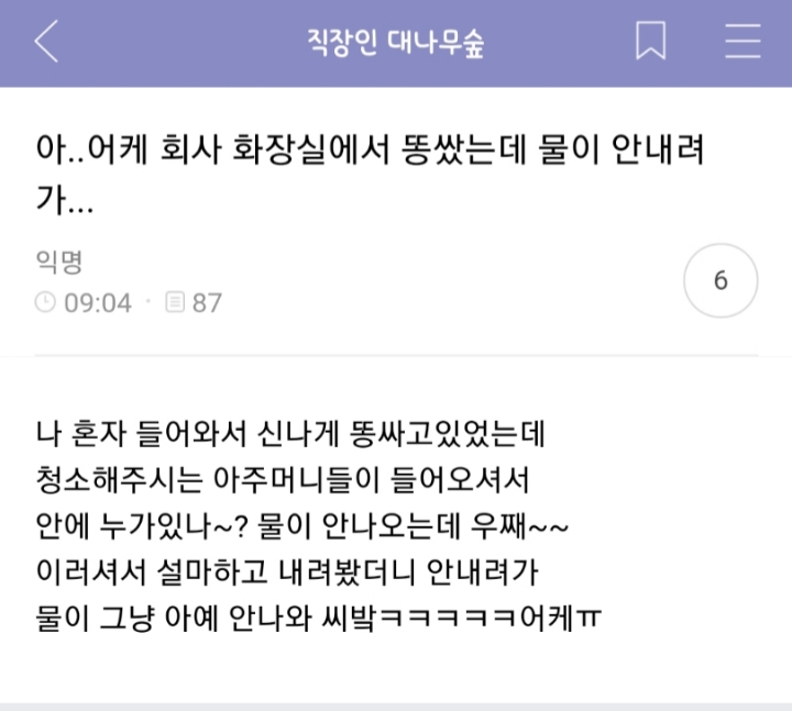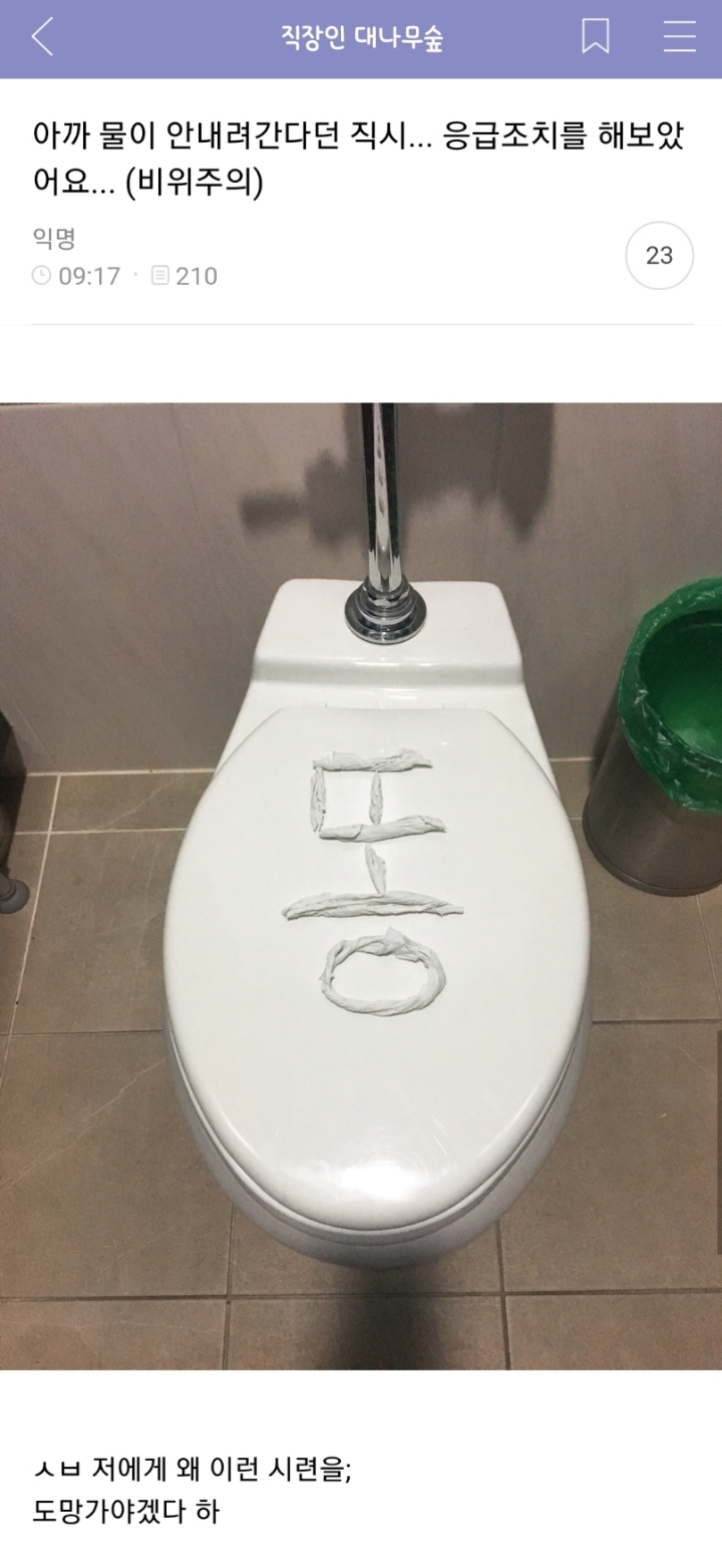 작성자아오아양겨ㅇ 작성시간 18.11.11 ㅋㅋㅋㅋ 난 변기위에 휴지로 X 친거 많이봄 물론 나도 한번 해봄.....