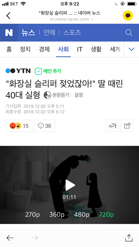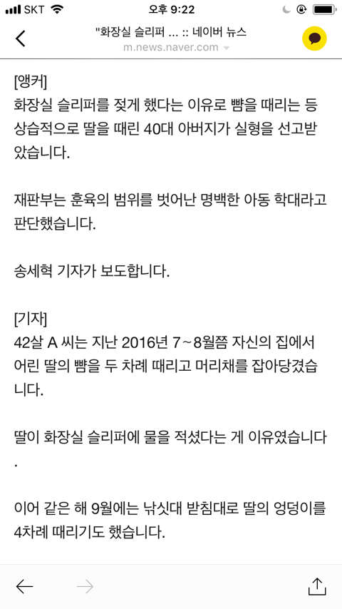 [기사]“화장실 슬리퍼 젖었잖아!”딸 때린 40대 실형 3개월(관심부탁해 쭉빵여러분모두 이거 우리 사촌동생이야기야 삼개월이 말이돼?이새끼는 악마야