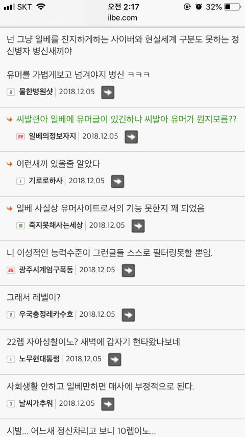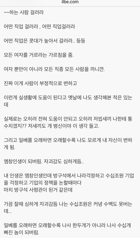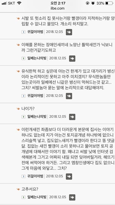 답댓글 작성자옴메한남을우째쓰까 작성자 본인 여부 작성자 작성시간 18.12.05 아 진짜? 난 일베는 그냥 이상한 글 많다는거 말고는 잘 몰라서 이번에 들어가보고 느낀게 여자를 무시하고 성희롱하고 그런게 엄청 많은 것 같긴했는데 그런부분은 처음듣네 .. 대박이다