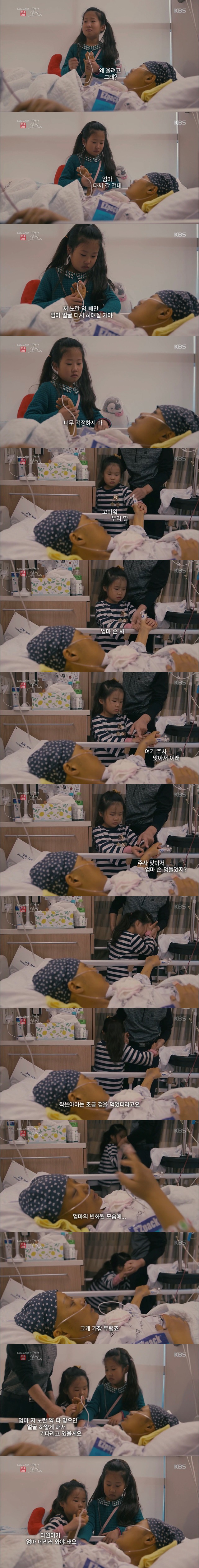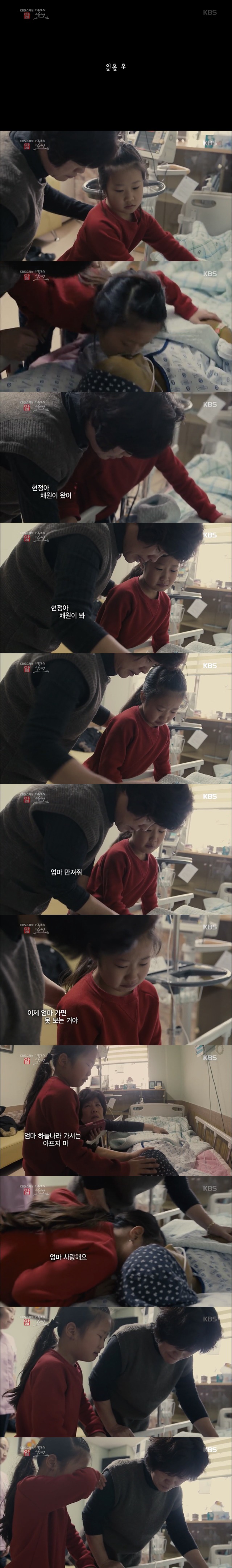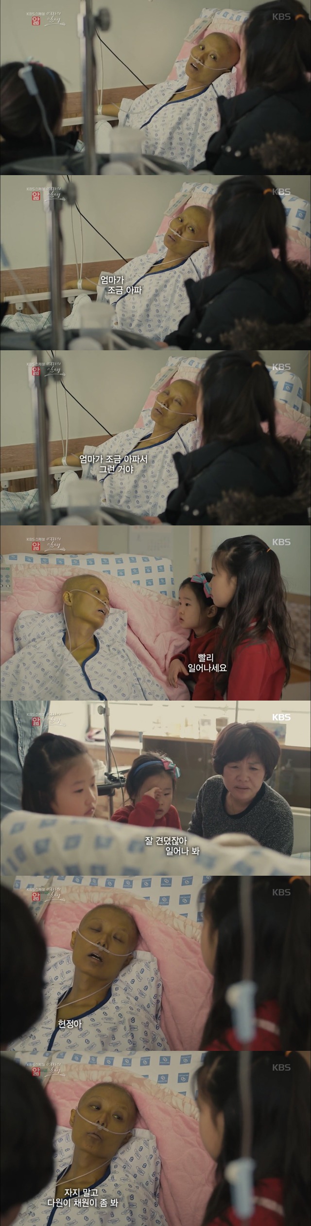 큰 딸 채원이는 아픈 엄마를 보며 눈물 흘리지만,