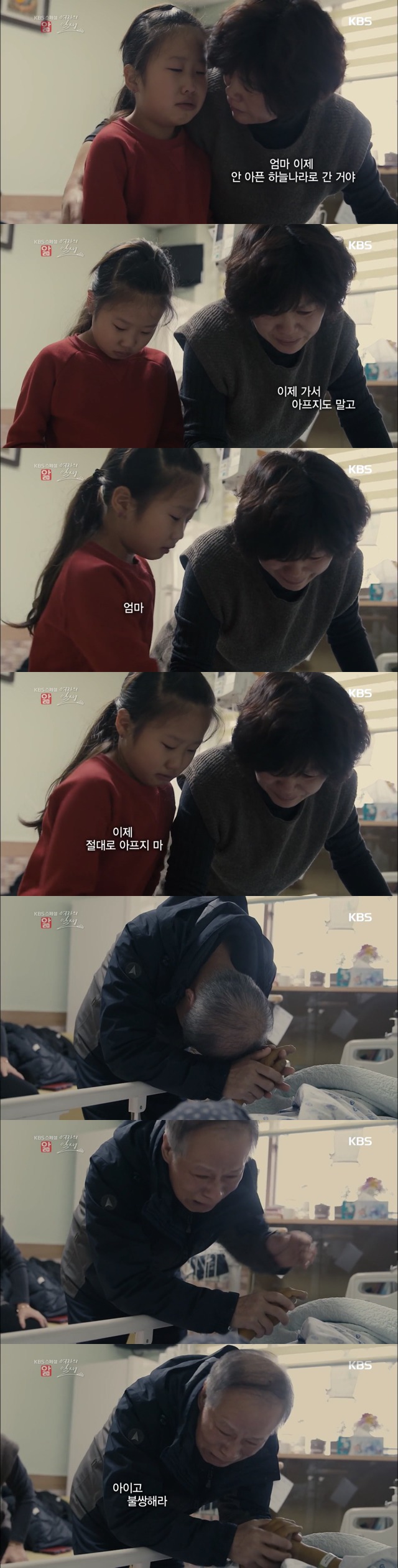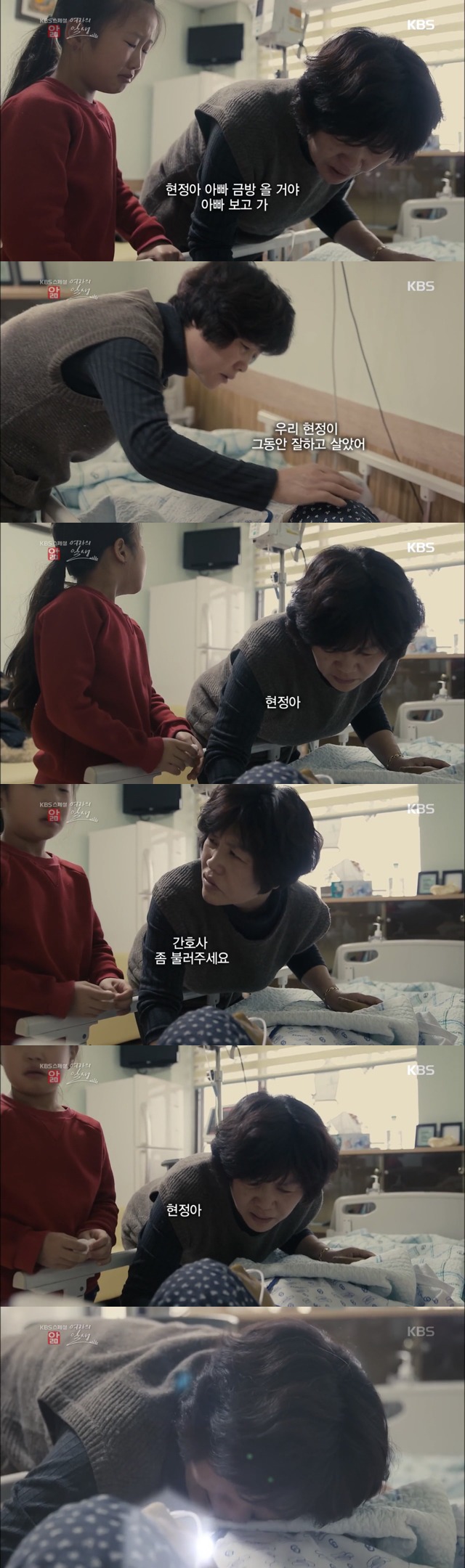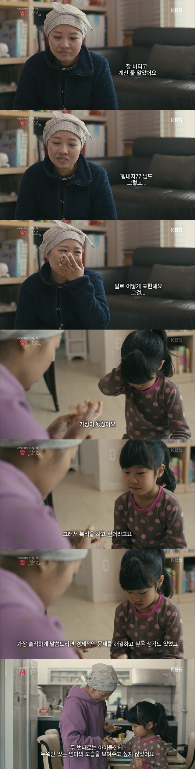 큰 딸 채원이는 아픈 엄마를 보며 눈물 흘리지만,