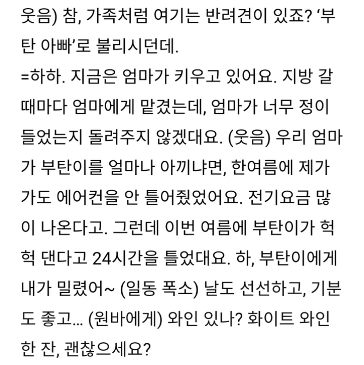 끝은 부탄이를 너무 좋아하셔 주지훈 올 때도 안 튼 에어컨을 부탄이가 헥헥대니까 틀으신 주지훈 어머니 일화