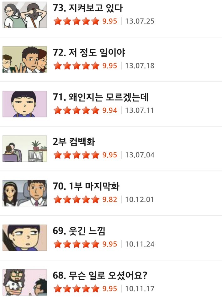 뭐 1년넘는 휴재를 깨고 돌아온 탈의 강임작가도 있고 어른스러운 철구의 작가 해다란님도 거의 몇년만의 공백끝에 컴백함. 더 놀라운사실은 몇년만에 돌아온 특영반작가 사다함도 있음(네이버는 대인배가 확실하다.. 사다함 거의 깽판치듯이 나간건데 받아주다니 ㄷㄷㄷㄷ) 이거땜에 덴마를 기다리게됨 ㅠㅠㅠㅠㅠㅠㅠㅠㅠㅠㅠㅠㅠㅠㅠ