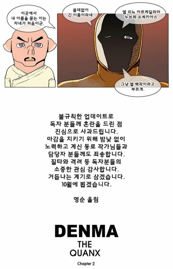 고통받아야하는지 자꾸 미루셔서 안타까움..제발 좀 돌아와주세여...ㅠㅠ그리고 댓글에 몇몇독자들이 분노중인 이유는 2월에 돌아온다했다가 4월25일로 번복되서임. 그리고 연재기간보다 휴재한날이 더 많다는 이애기도 있고 해서 쌓인게 터진것도 있음. 스토리가 재미있고 그림도 매우 매력적이라서 재능이 많지만 성실함이 조금은 아쉬운작가.
