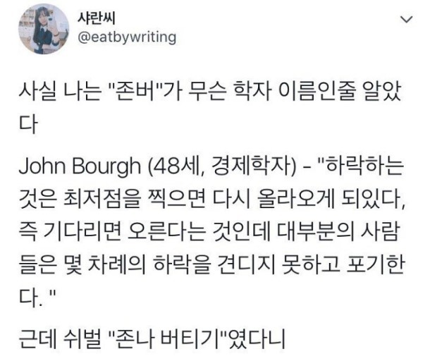 [유머]존버 짤 모음 작성자슼테판|작성시간19.01.11|조회수118,856 목록 댓글 38 글자크기 작게가 글자크기 크게가 내 우슴지래 존버 ㅠㅠㅋㅋㅋㅋㅋㅋ문제시피드백 다음검색 현재 게시글 추가 기능 열기 북마크 공유하기 신고 센터로 신고 댓글 댓글 38 댓글쓰기 답글쓰기 댓글 리스트 답댓글 작성자아이작 뉴트 | 작성시간 19.01.11 나돜ㅋㅋㅋㅋㅋㅋㅋ 작성자시완벽 | 작성시간 19.01.11 존버해서 떡상했닼ㅋㅋㅋㅋ 앜ㅋㅋㅋㅋㅋㅋㅋㅋㅋ 작성자할스톤 세이지 | 작성시간 19.01.11 근데 존버 제일처음 쓴게 이외수라매?.... 작성자행운만렙 | 작성시간 19.01.11 근데 떡상은 진짜 왜 떡상이라 해? 의미 말고 유래가 뭐야 답댓글 작성자보들보들맛좋은라면 | 작성시간 19.01.11 뭐야..? 나도 궁금.. 댓글 전체보기