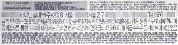 위와 같은 대형업체는 잘 지키나 생활정보지 광고는 잘 안지키는 경우가 있으니 따지고 넘어가려면 이걸로도 걸고 넘어갈 수 있는 경우가 있다. 아래서 말하는 법은 대부업등의 등록 및 금융 이용자 보호에 관한 법률과 이 법과 관련된 대통령령을 말한다.