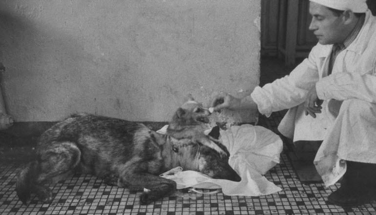 심지어 실험의 실패로 곧 죽을 고통스러워 하는 개에도