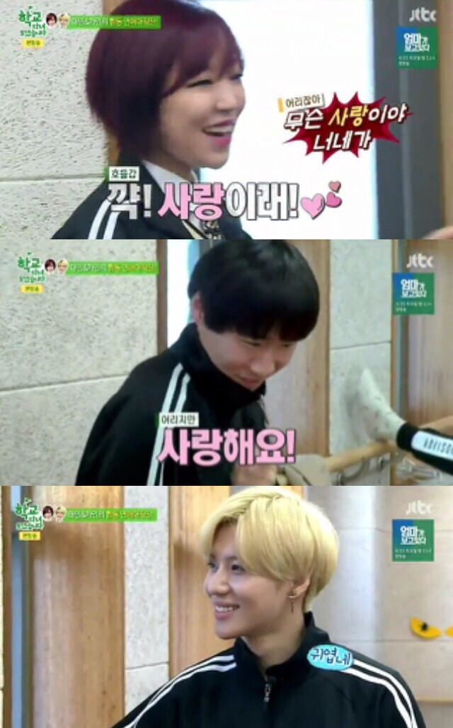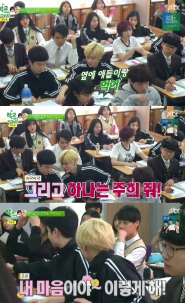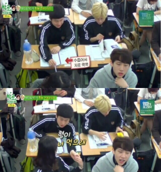 수업시간에 태민이 필통에서 사탕 세개 꺼냄