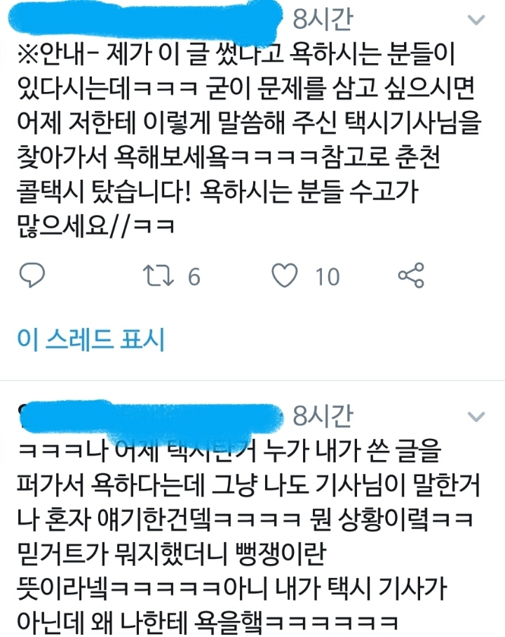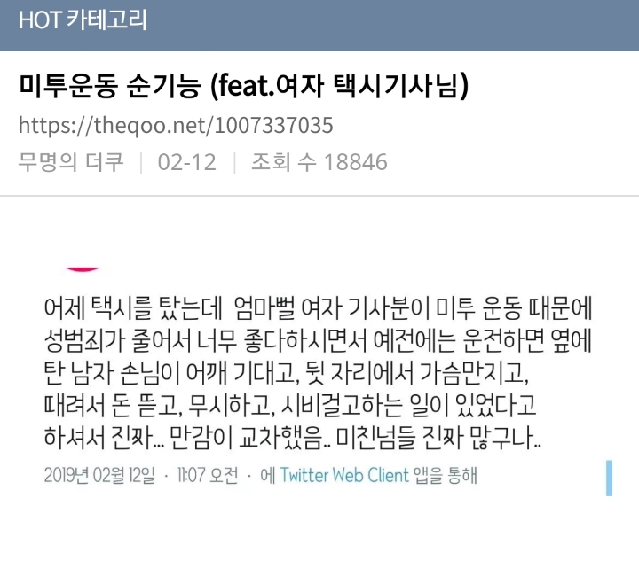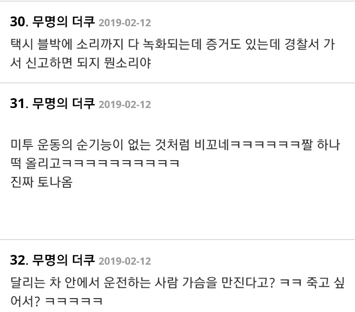 더쿠가 그거 퍼가서 진짜 피해자일 수 있는 택시 기사님 존나 비웃음