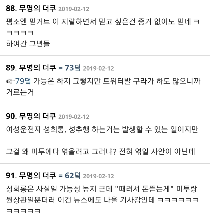캡쳐는 안됐는데 미투 운동 비웃는 댓도 여럿 있음