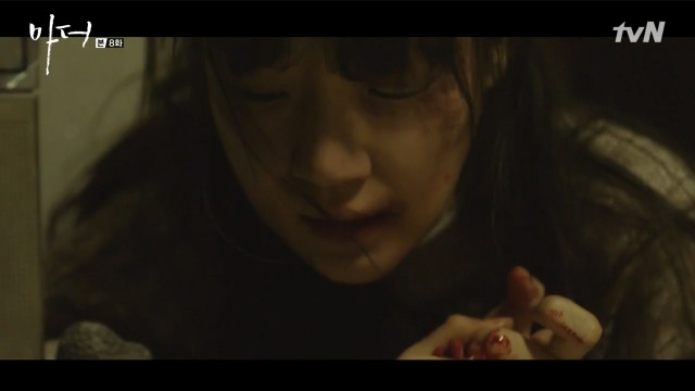 (억지로 손을 붙잡고 새끼 손가락을 자름)