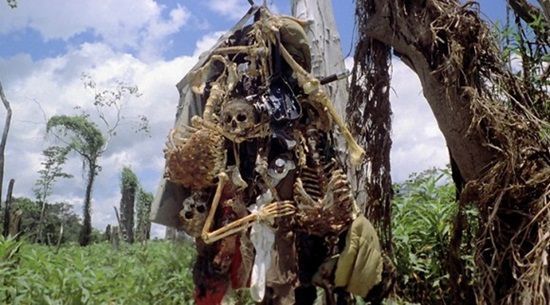 아마존에서 사라진 기자들, 피바다에 잠기는 원주민 묘사 등이 구역질이 날 정도. 많은 나라에서 방송금지됨. 영화감독이 진짜 살아있는 동물을 실제로 죽여 항의가 많았음.