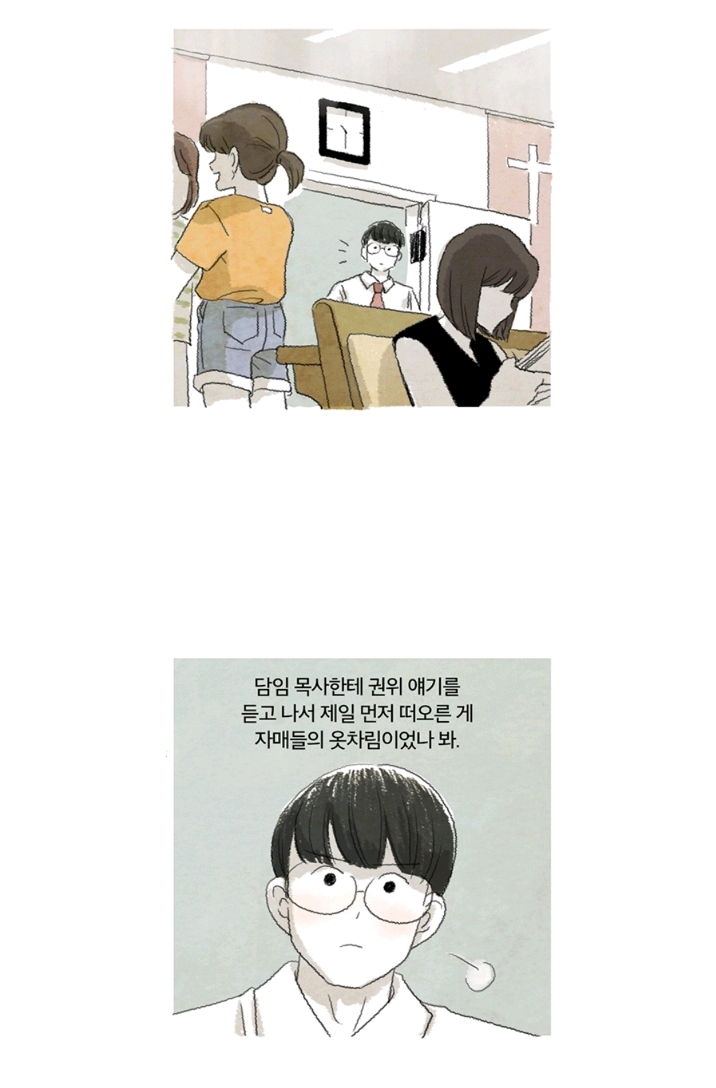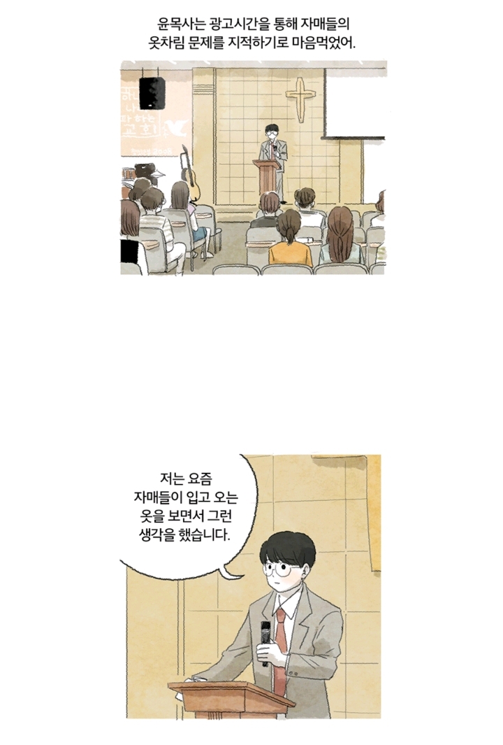 그리고 저 후에 자매님들이 긴 치마나 무릎 이상 길이의 바지나 그런 옷차림으로 나오지만 저 윤전도사가 대놓고 지목한 슬아자매는 입고 싶은 옷을 입고 교회에 나갔어