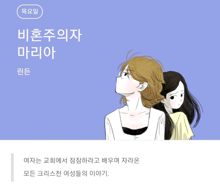내가 소개하고 싶은 웹툰은 <비혼주의자 마리아>라는 웹툰이야