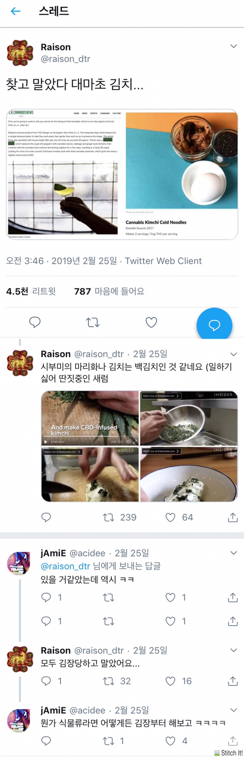 [스크랩] [유머]술자리 김치게임 답 나왔다 작성자엔시티 이동혁|작성시간19.03.06|조회수40,493 목록 댓글 219 글자크기 작게가 글자크기 크게가 .....??네...???????조팔.... 파스닙 뭔데... 그거 뭐 어떻게 생긴건데...+번외??끝이없는 김장국가....문제시 삭제 다음검색 스크랩 원문 : 쭉빵카페 현재 게시글 추가 기능 열기 북마크 공유하기 신고 센터로 신고 댓글 댓글 219 댓글쓰기 답글쓰기 댓글 리스트 작성자小霖霖 | 작성시간 19.03.06 방사능딸기김치 작성자ㅇㅁㅇ..? | 작성시간 19.03.06 뭐만얘기하면 다있어서 못말하겄네 ㅋㅋㅋ 작성자극혐좆본아웃 | 작성시간 19.03.06 얘들아 채소........ 작성자닉생각만1시간째 | 작성시간 19.03.06 노니김치 없지않나? 작성자김볶킬러 | 작성시간 19.03.06 모야 진짜.. 댓글 전체보기