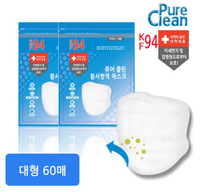 ▲퓨어클린 황사방역 마스크 대형(KF94)