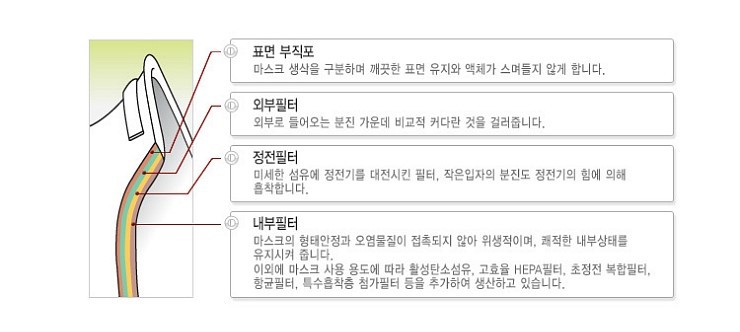 장점 : 보관할 때 마스크 안쪽의 오염 위험이 적음