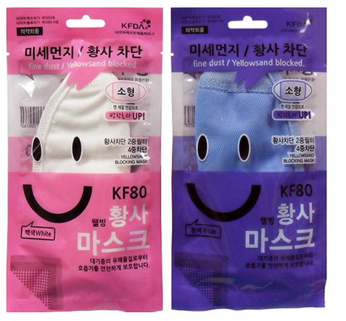 ▲웰빙현대케미칼 황사마스크 중형(KF80) ·소형(KF80)