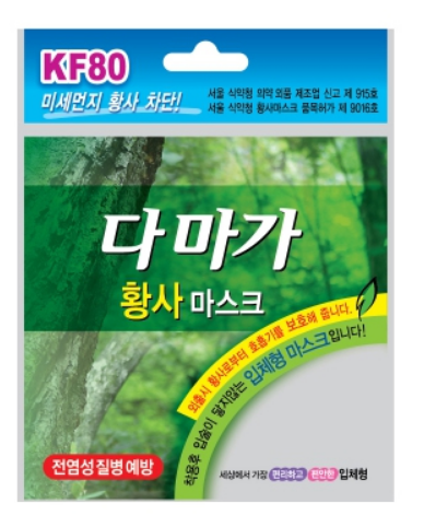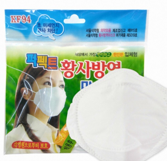 황사용 또는 미세먼지용 마스크는 기준이 있고 kf80, 94, 99등 숫자로 표현함