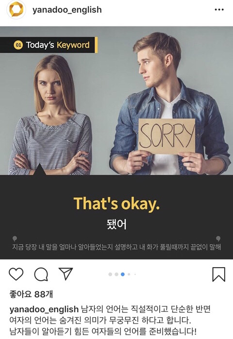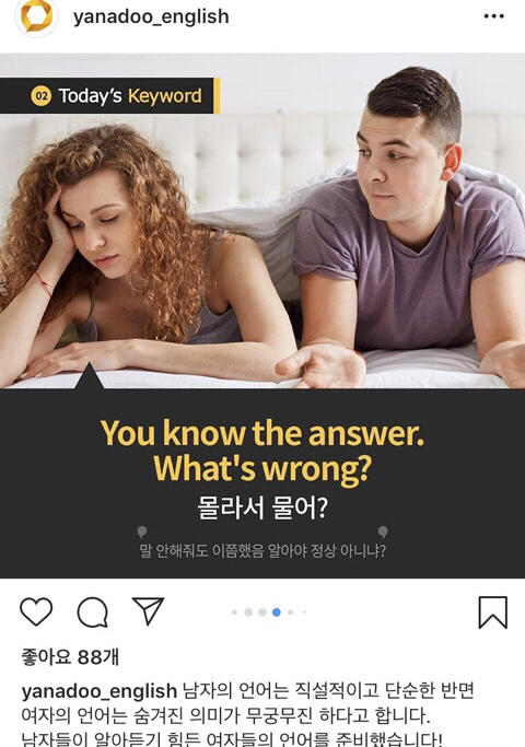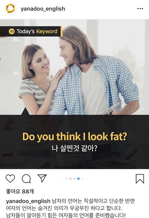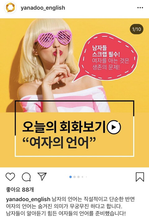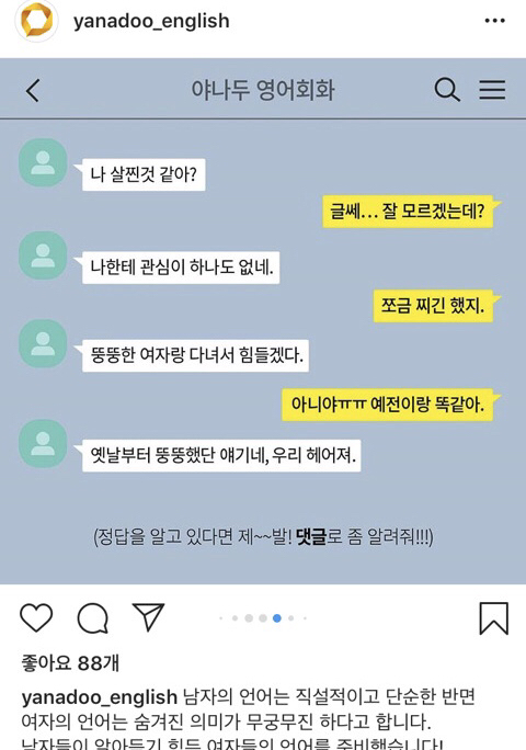 야나두가 가르치는 영어에는 여자언어 남자언어 따로 있나봄?