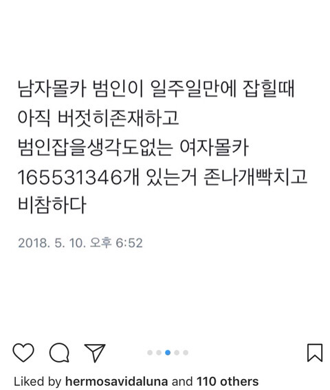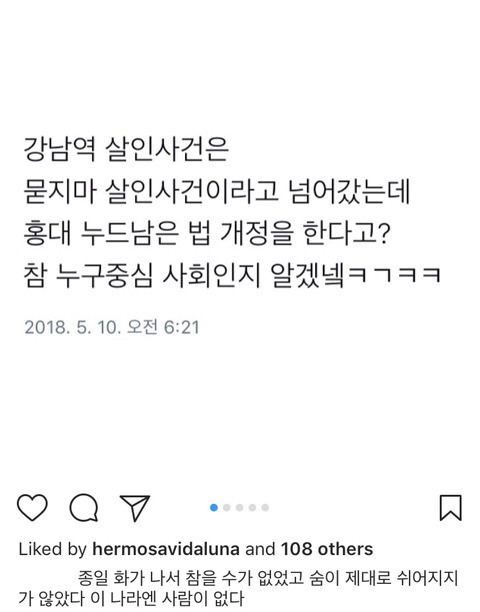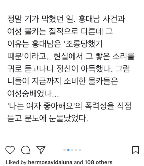 얼마전 홍대남 사건 관련 인스타 좋아요 누른 루나