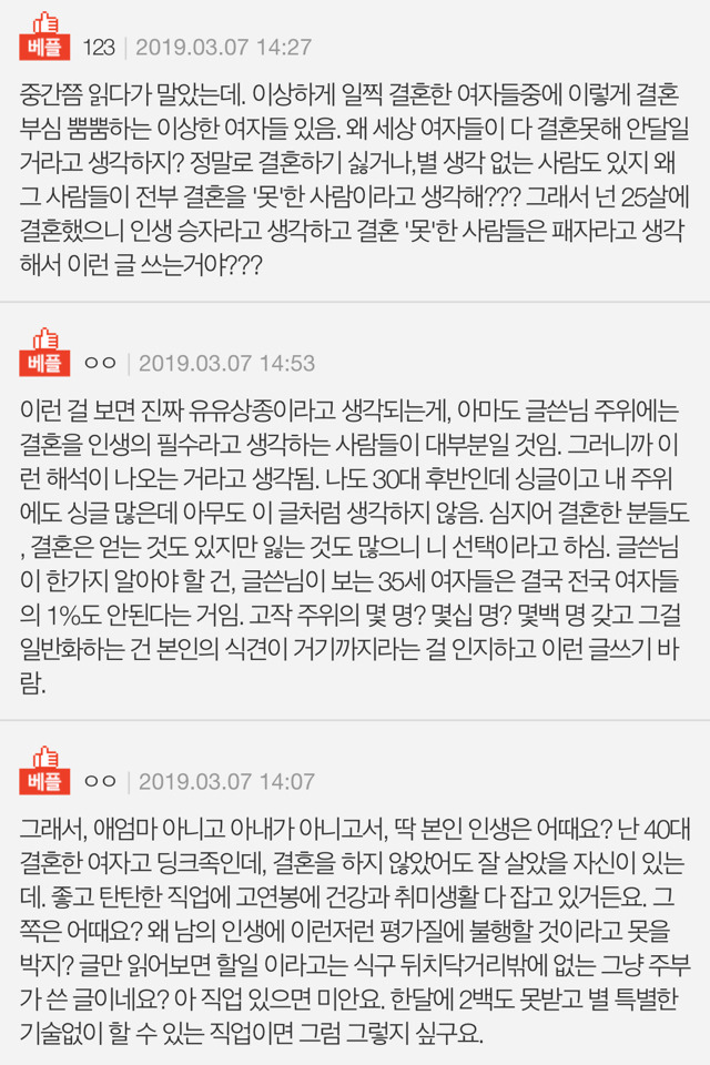 작성자DAY6 ♥️ 작성시간 19.03.09 일찍 결혼한게 억울해서 정신승리 하는 거라고 밖에 안 보여..^^