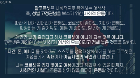 <영상 마지막에 나오는 탈코르셋의 정의>