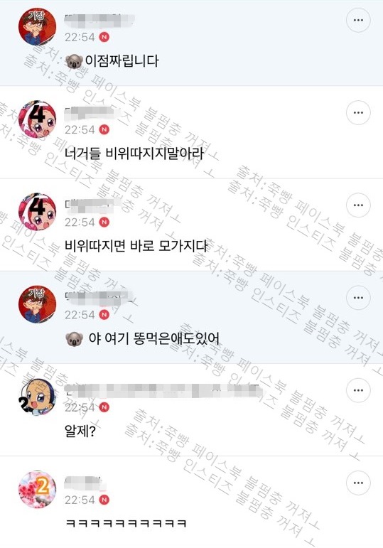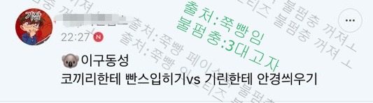 작성자깬 거 아니고 못 잔 겁니다 작성시간 19.03.19 ㅋㅋㅋㅋㅋㅋㅋㅋㅋ진짜 존나웃김 관전만 해도 씨바 뒤질거같애 애들 말투 존나웃뎌ㅜㅜㅜㅜㅜ 때잉 ㅠㅠㅠ시바