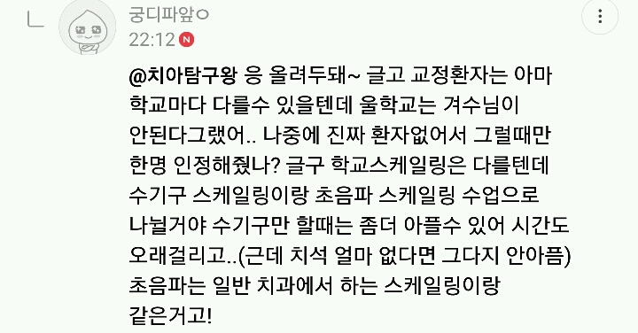 치아를 못깎는다니까. 시간되고 스켈링 자주받아야하는 사람들은 한번 알아봐바~