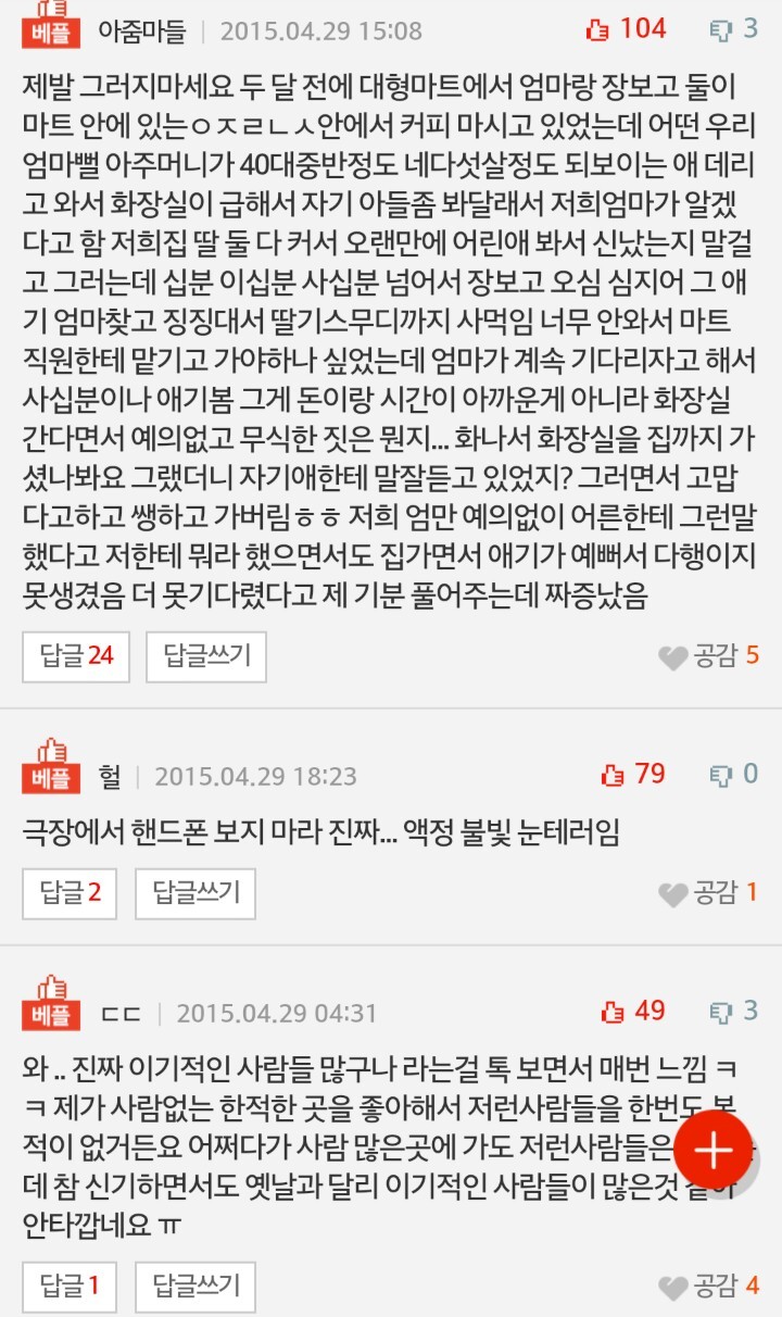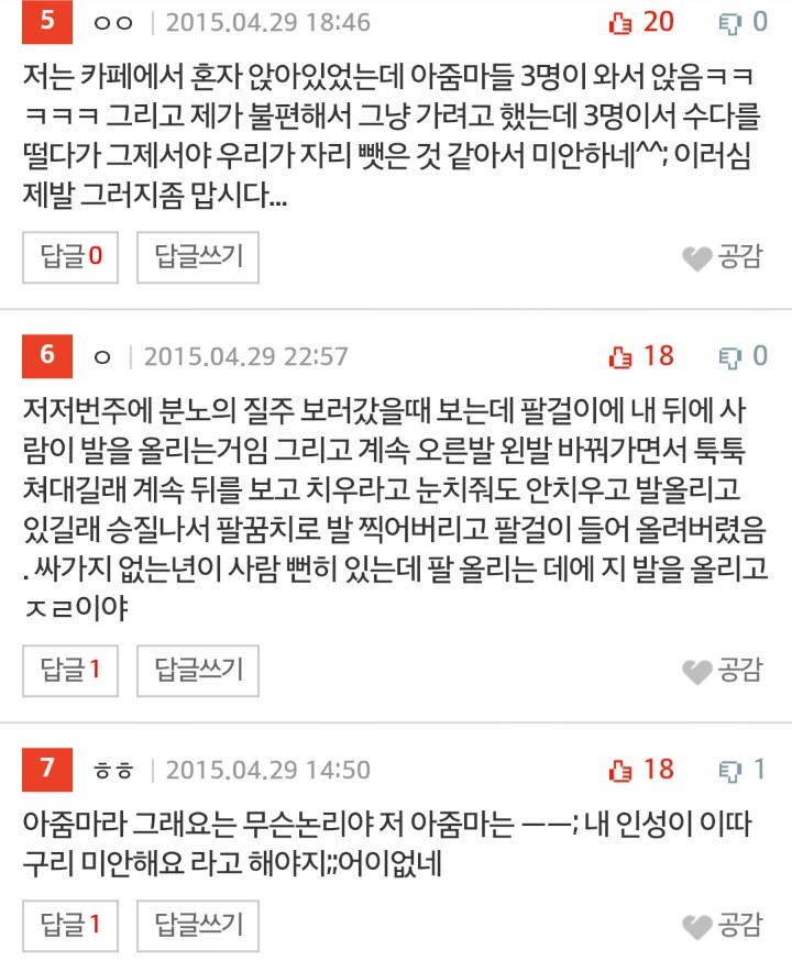 개념이없다기보단 남을배려하지않는 아줌마들때문에 정말 기분안좋았어요 ㅠㅠㅠ