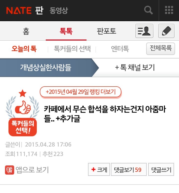 작성자공주young 작성시간 15.04.30 여기댓글들도 충격인데 대박이다... 저런개념없는 사람들이정말잇다고??난 봐봣자 핸드폰불빛 정도인데 애니팡하는사람들은뭐고 진심 충격이야....