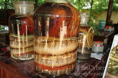 살아있는 뱀을 술통에 담아 숙성시킨 술