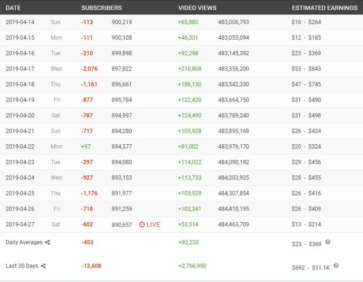 대도서관 - 인성/지각논란 전부터 꾸준한 감소