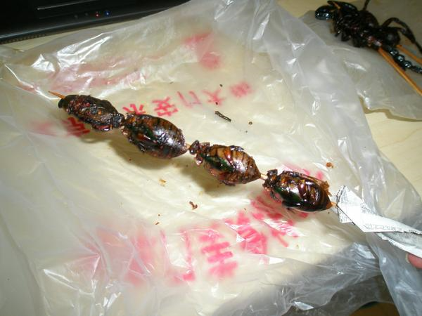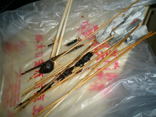 제가 아무래도 과일이나 고기에는 눈길도 주지 않고 벌레만 잔뜩 사다 보니, 진짜 제 주위에 사람들이 와글와글 모였습니다. 게다가 한두개는 아무래도 사서 그냥 먹으면서 걷게 되잖아요. 그쯤 되니 아무도 제가 외국인이라고 생각하지 않고, 말 걸 때는 무조건 중국어. 귀찮게 외국인을 쫓아다니며 호객행위 하는 사람들도 아무도 붙지 않았습니다......;