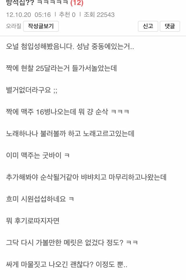 이건 모 사이트의 방석집 후기와 댓글들ㅋ...