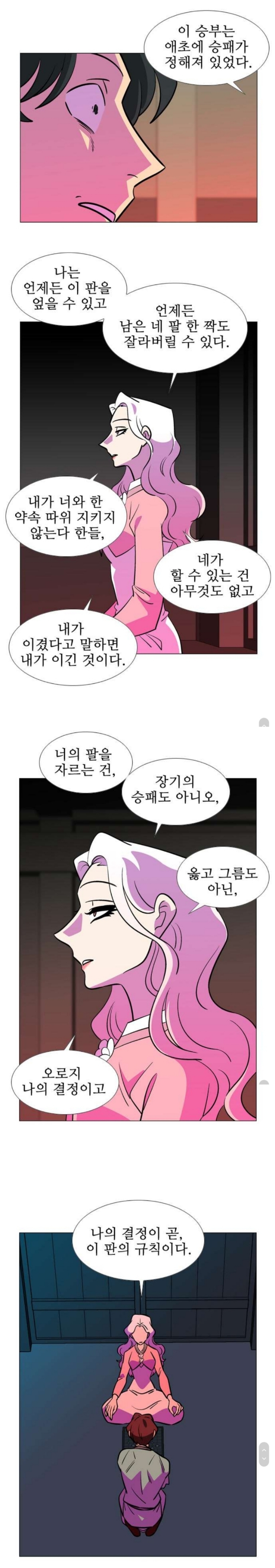 백매는 판을 움직이는 것은 옳고 그름이나 양심이 아닌,