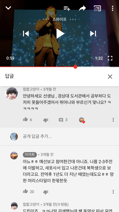 사람들이 복학생이 도서관에서 공부하다가 도저히 못들어주겠어서 뛰쳐나와서 부른거 아니냐고 ㅋㅋㅋㅋㅋㅋ했던게 기억남